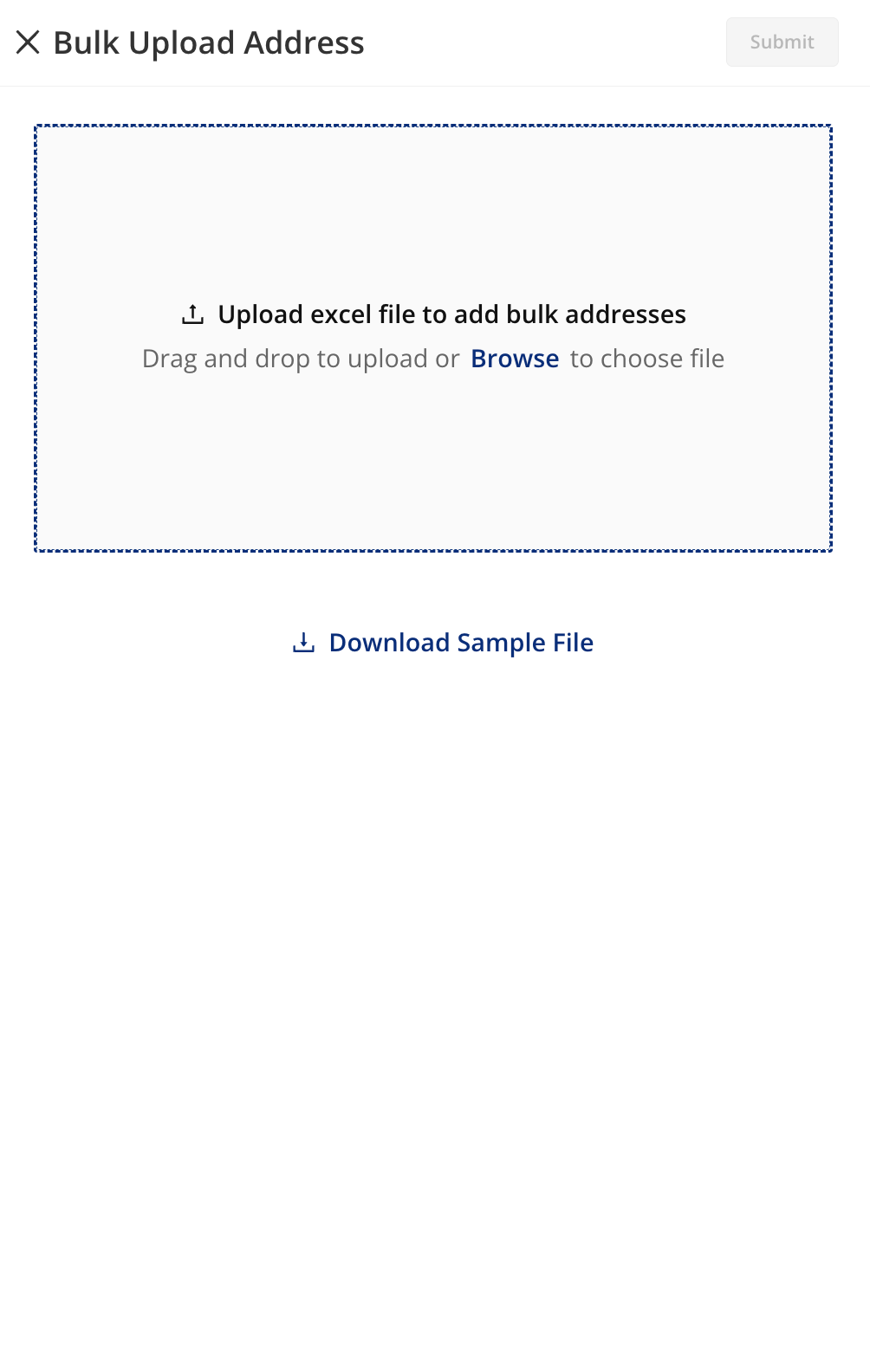 - Click on bulk upload to upload multiple addresses at once
