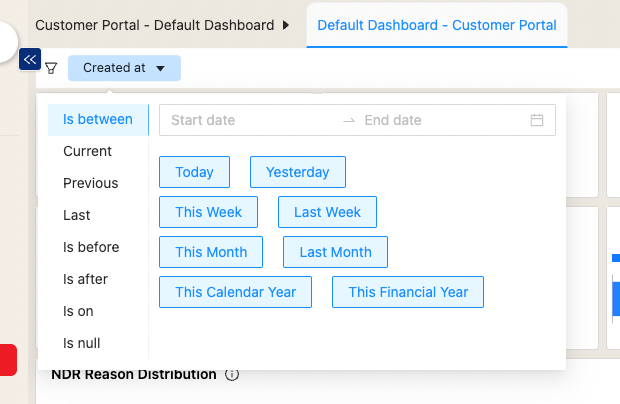 The time frame of interest can be chosen by clicking on the ‘Created at’ tab. The page that opens up after clicking on it will look as below.