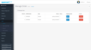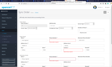 This feature allows you to view details of synced orders, such as the AWB Numbers and current status. Using this page, you can also get shipping label for each order and can cancel the orders as well. This will cancel the synced order, not the order present in Opencart.