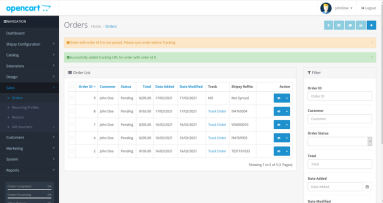 On success, you should get a green "Successfully added Tracking Url for order with order id!" message and Track Order link will appear beside the order.