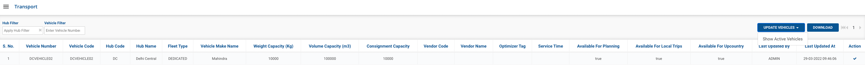 Click on Update Vehicles DropDown → Show Active Vehicles to view all active vehicles