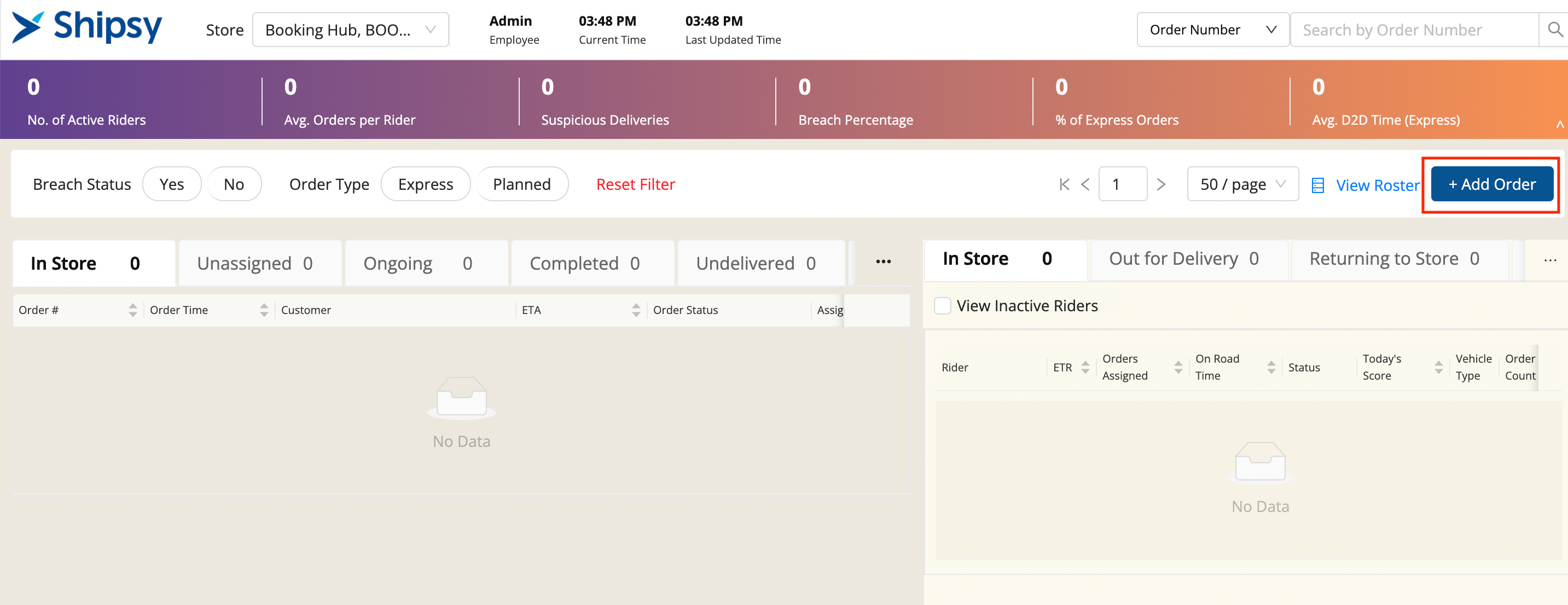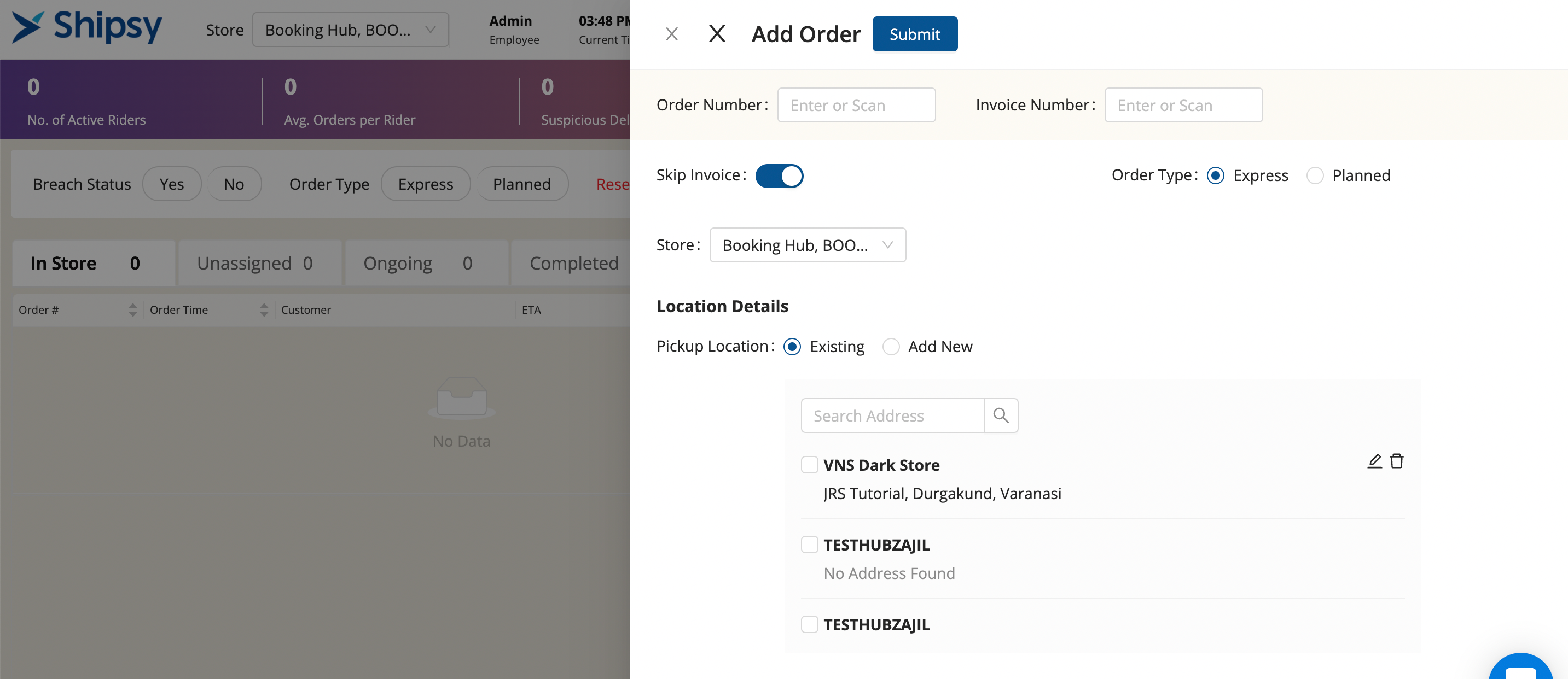 - Click on Add Order Button in Dispatch Screen to add new order from UI.