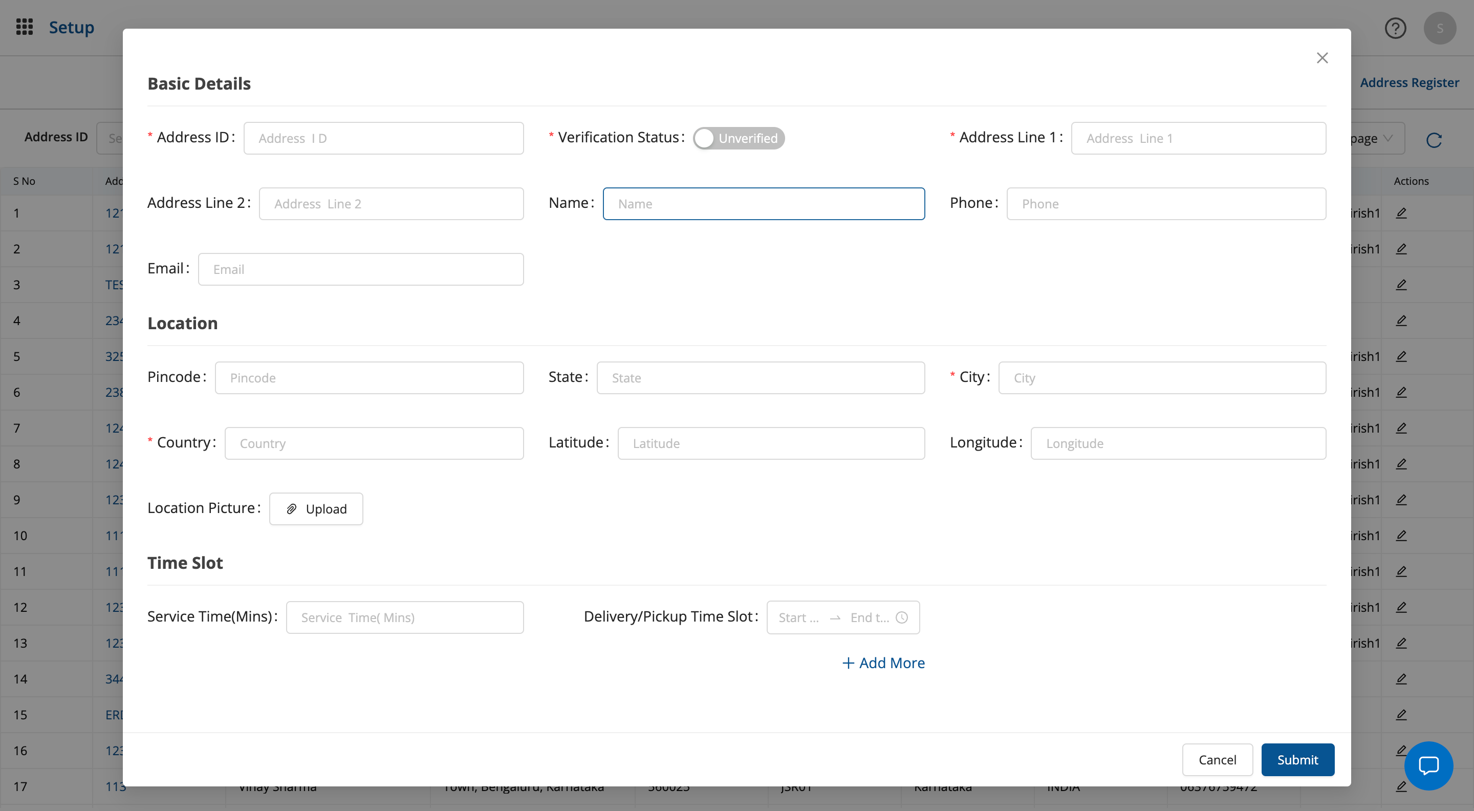 verification statuskey to mark the address as verified or not verified - Additionally, user can also add images of the address location for easier identification