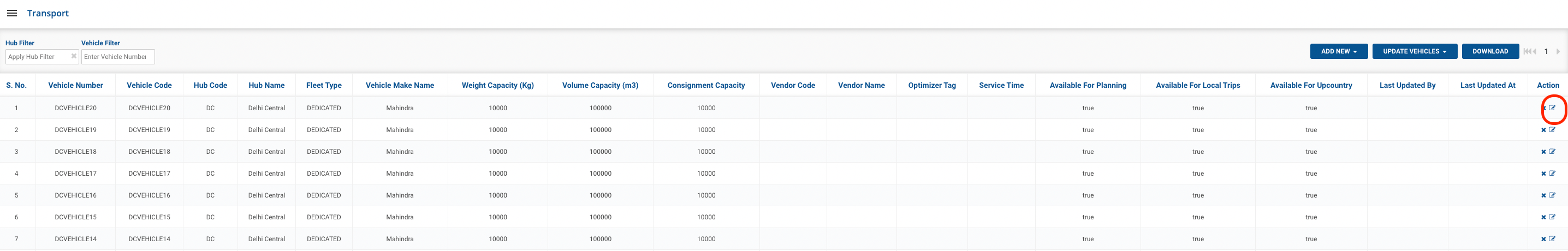 Click on Edit Vehicle button() under Action column → A form shall appear with existing data. This method is used to update single vehicle data.