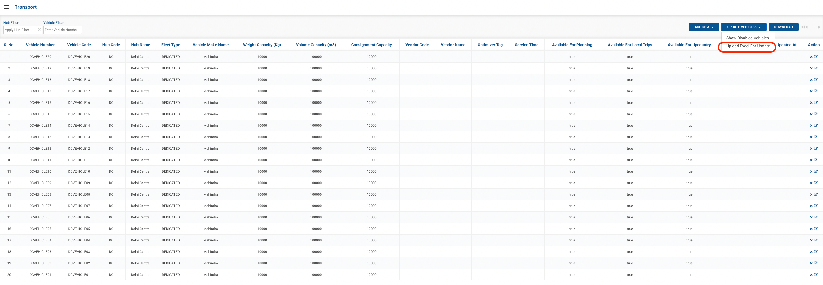 Method 2- Click on Update Vehicles → Upload Excel For Update. This method is used to update vehicle data in bulk.