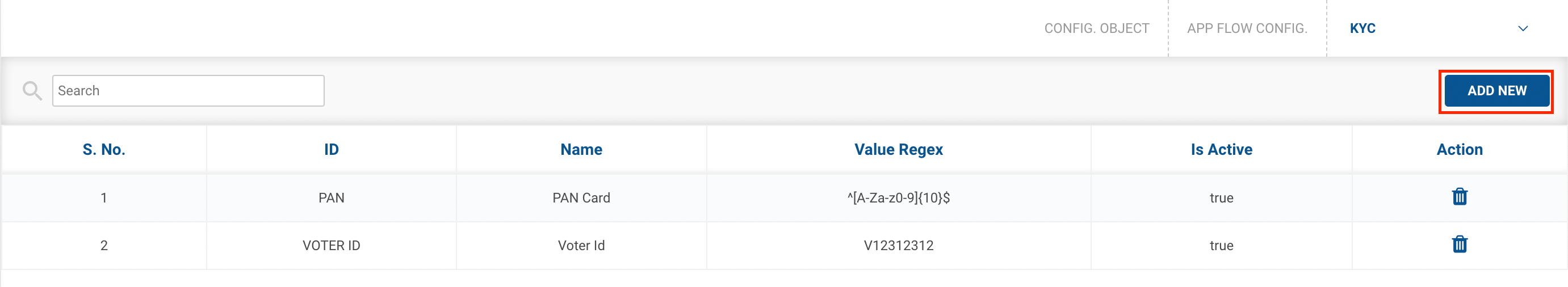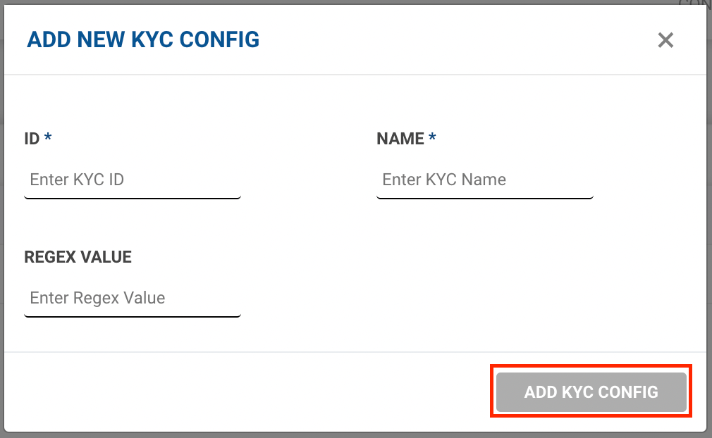 - Fill up the form and click on Add KYC Configbutton.