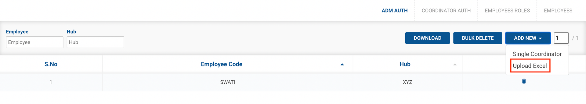 Method 2 - Upload Excel option → A form appears with the required fields to be filled.