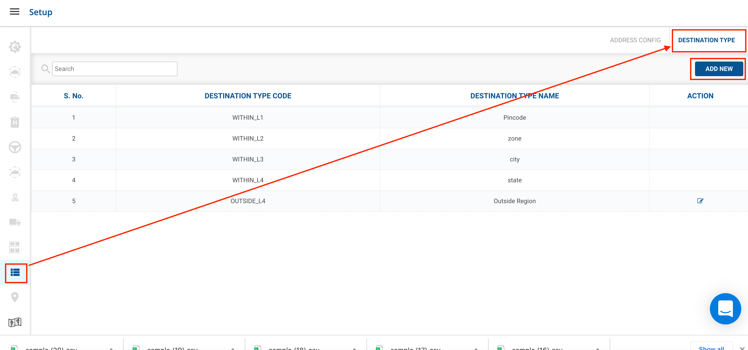 - Go to Address Hierarchy → Destination Type → Click on the Add New button.