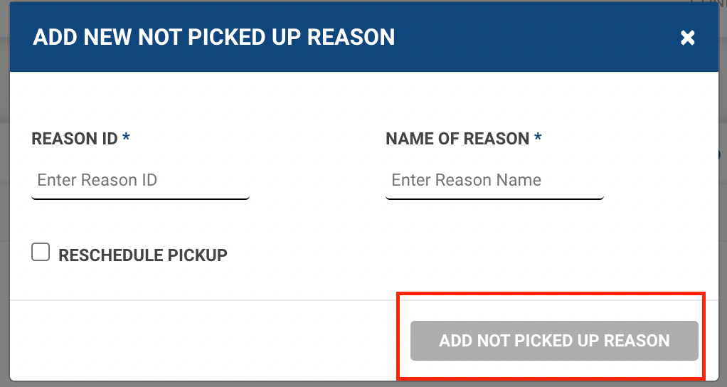 - Fill up the form and click on Add Not Picked Up Reason button.