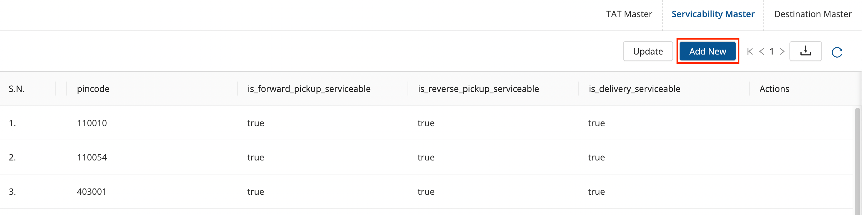 - You’ve successfully created a new set of Servicability Masters for a set of Pincodes.