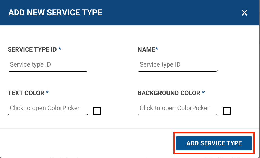 Fill up the form and click on ADD SERVICE TYPEbutton.