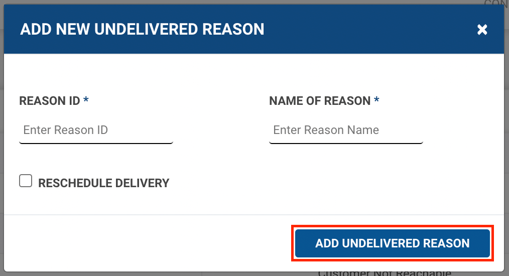 - Fill up the form and click on Add Undelivered Reasonbutton.