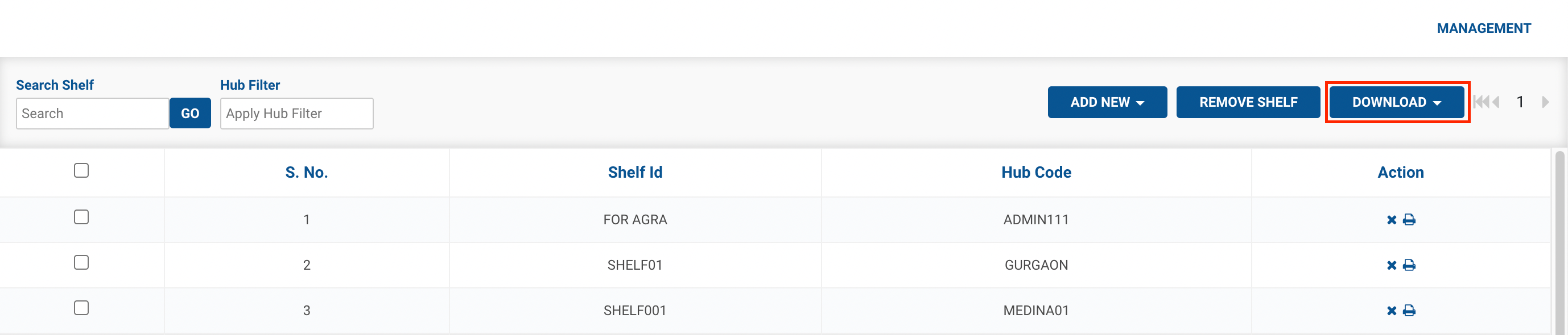 Method 2- Download All option → This method is used to download the details of all the Shelves.