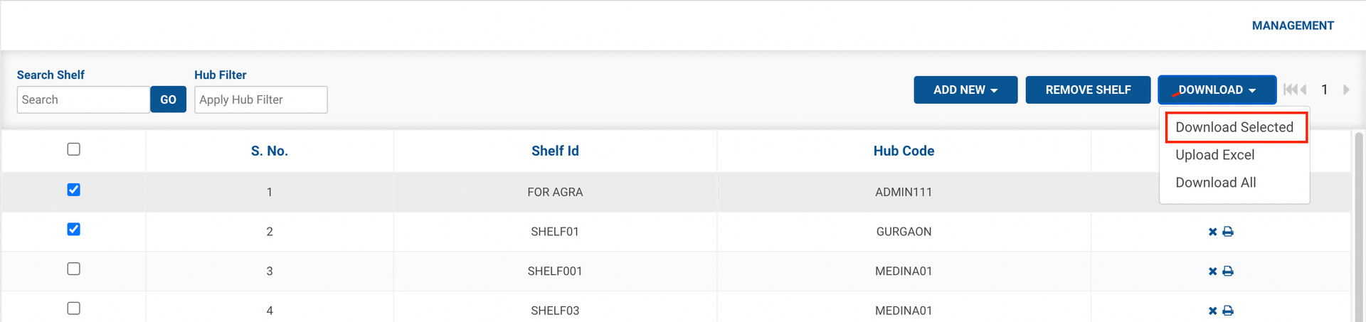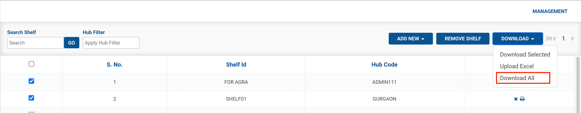 Method 1- The Download Selected option → Select a set of shelves that have to be downloaded.