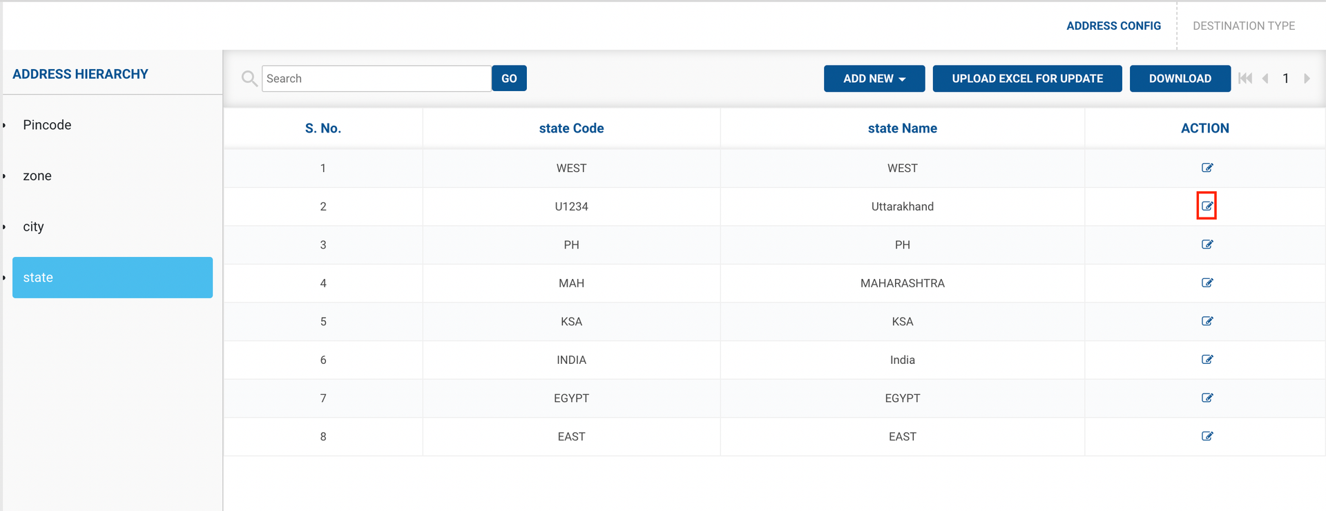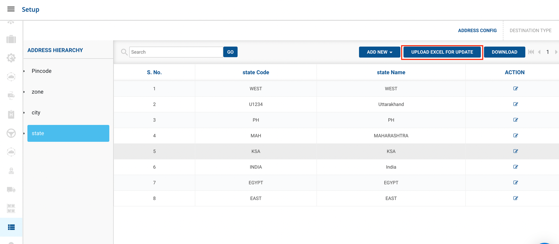 Follow the above steps for Cities,Zones and Pin codes.