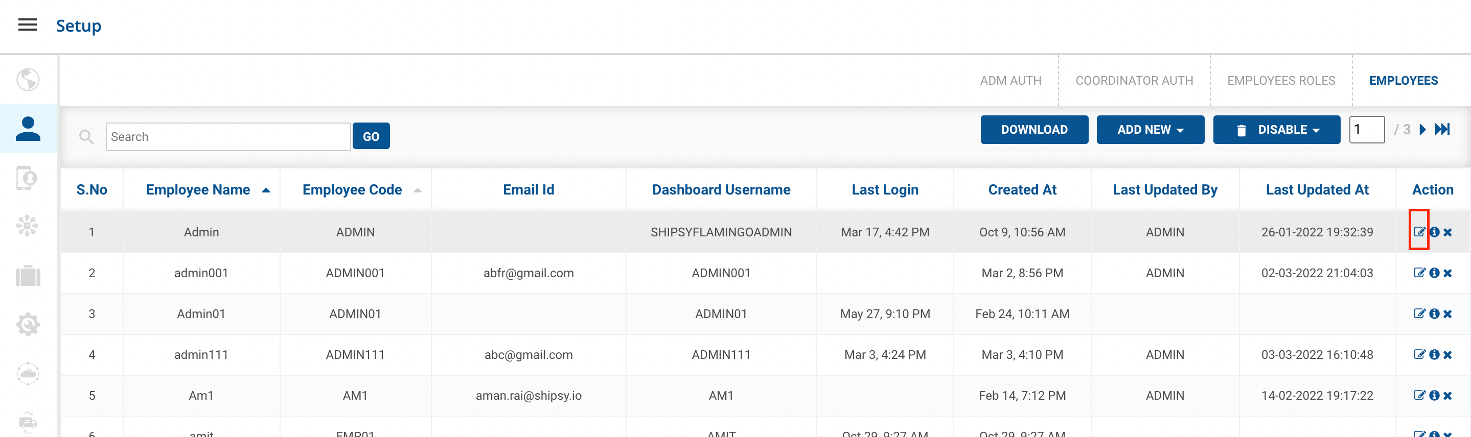 ) → Setup → Employees (👨💼)