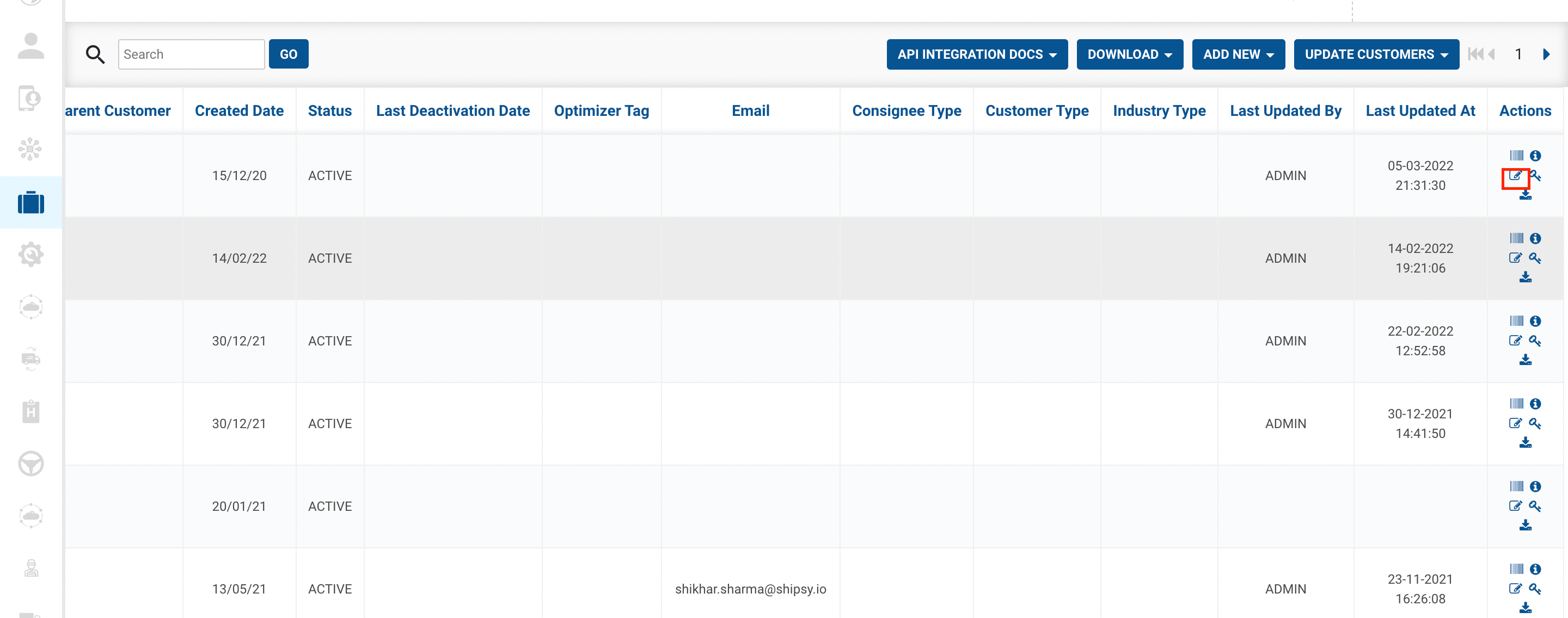 You have successfully updated the existing Customers.
