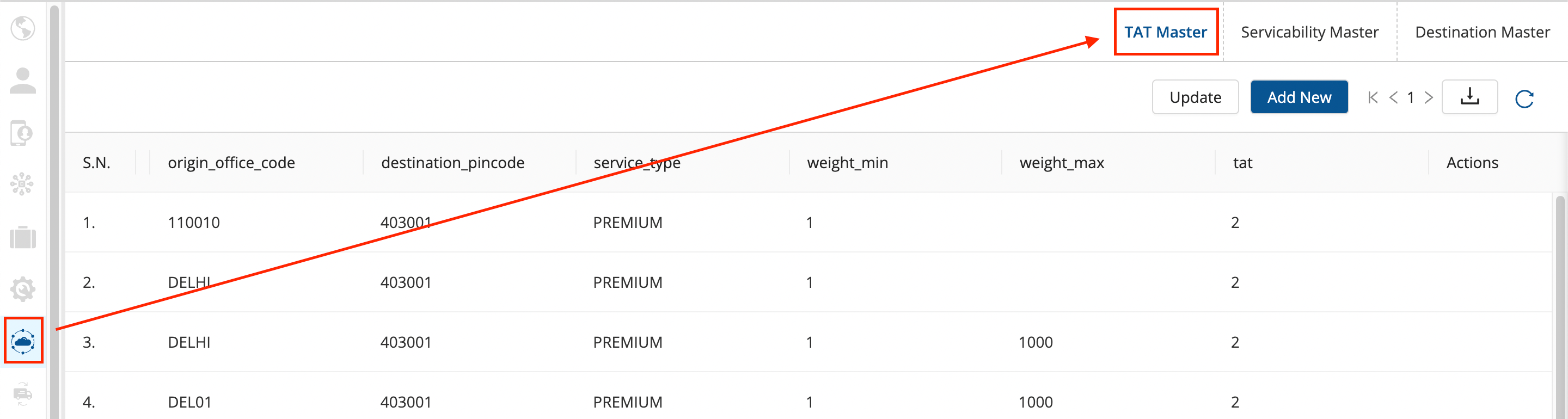 Click on the hamburger menu () → Setup → Express Booking Masters () → TAT Master