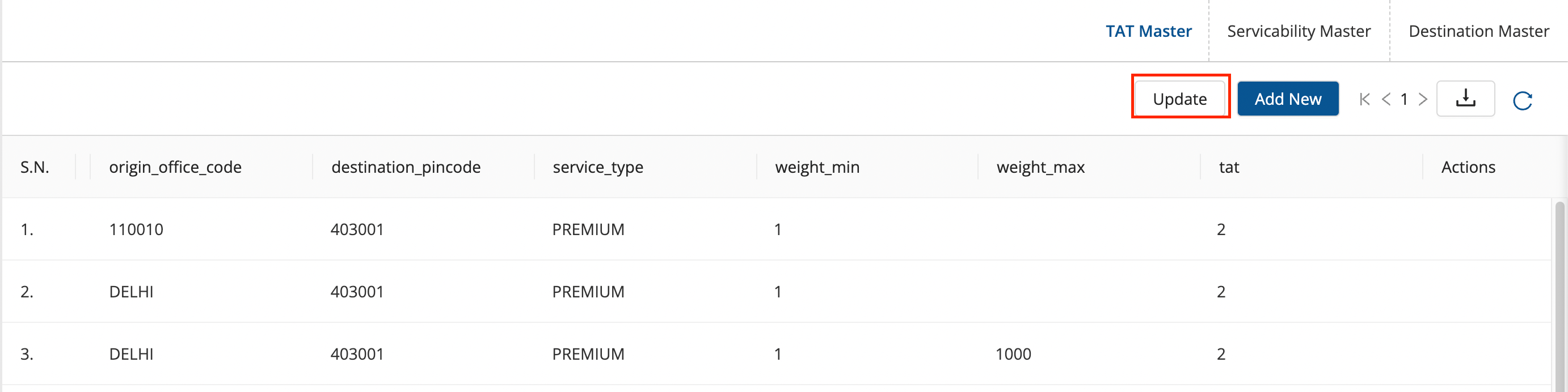 - A form shall appear with the excel to be uploaded to edit the TAT Masters.