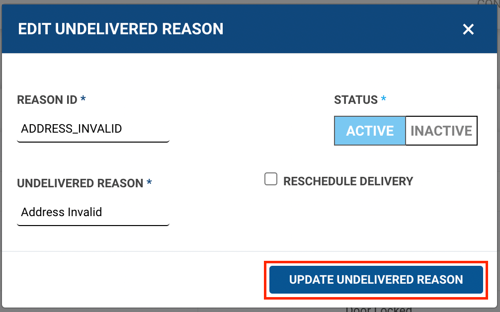 - You’ve successfully edited an Undelivered Reason.