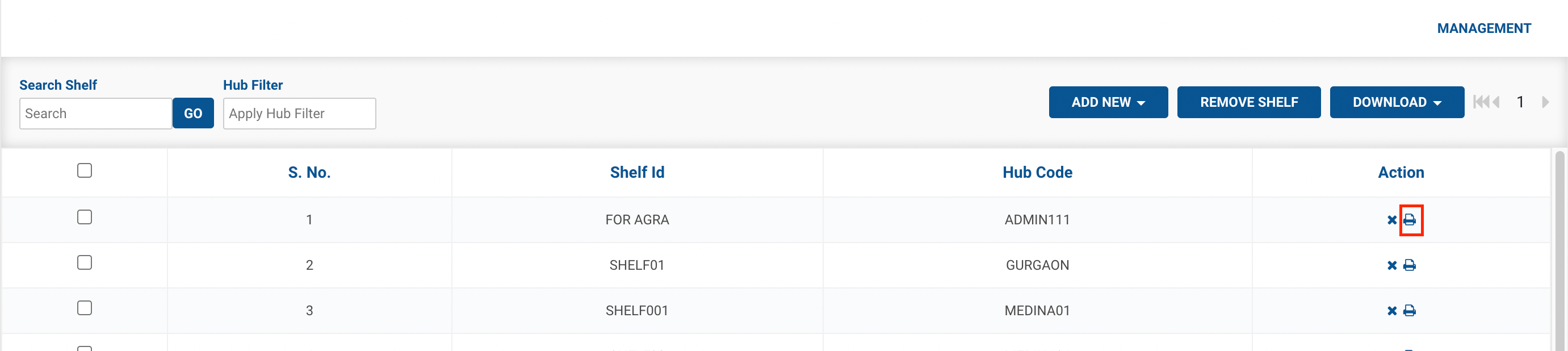 - Click on the Print button to print the details of the following shelf.