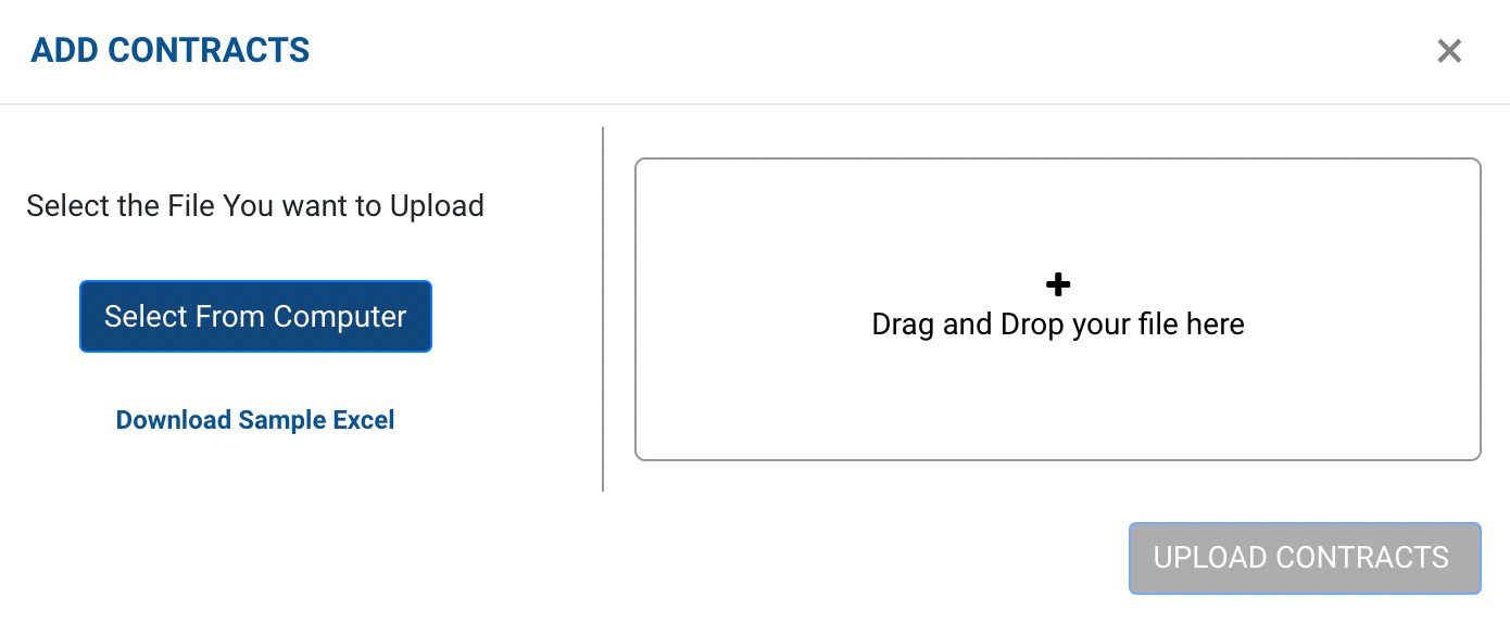 - On the window, Click on Select From Computer or Drag and Drop the updated Excel file with rates to upload contract.