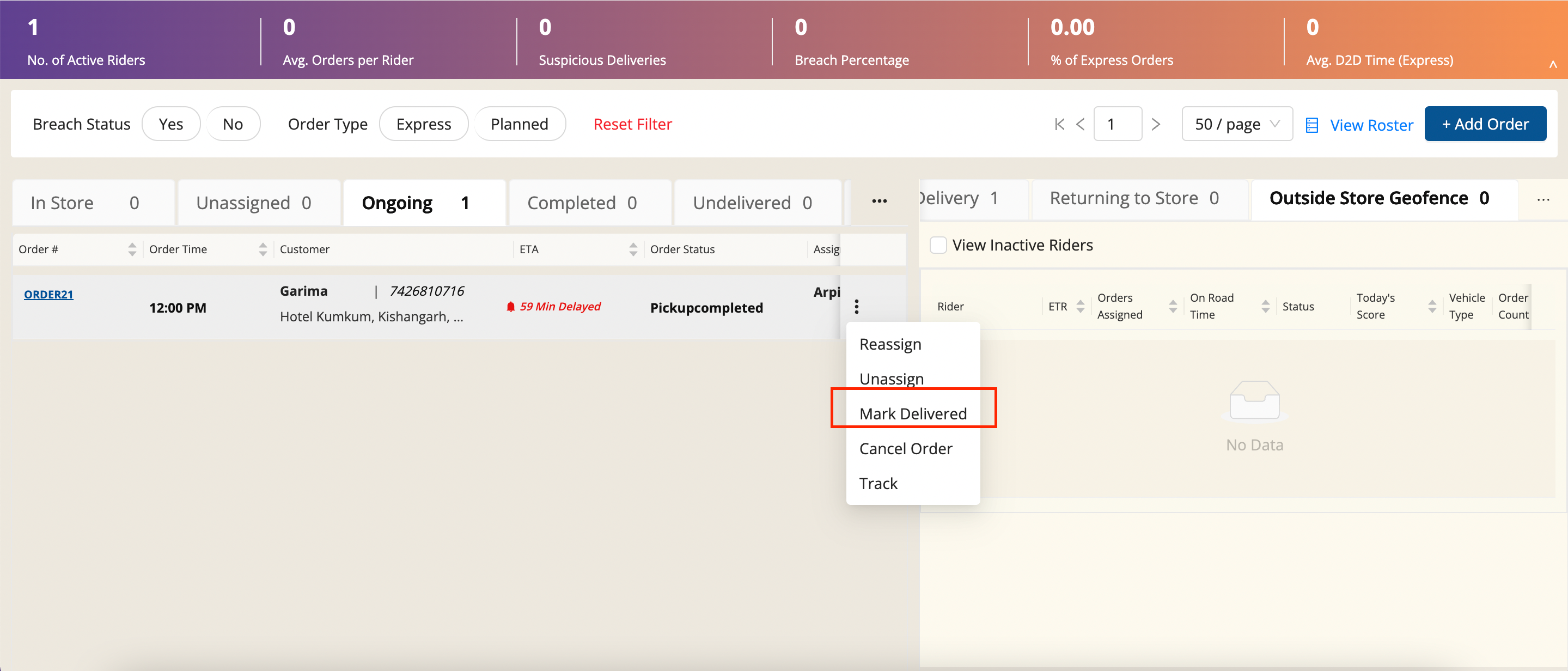 Article oa_6Jfpg · sourceDescription: We have a feature in dispatch screen, that we can mark the order delivered in case of any issue with rider or any other problem.