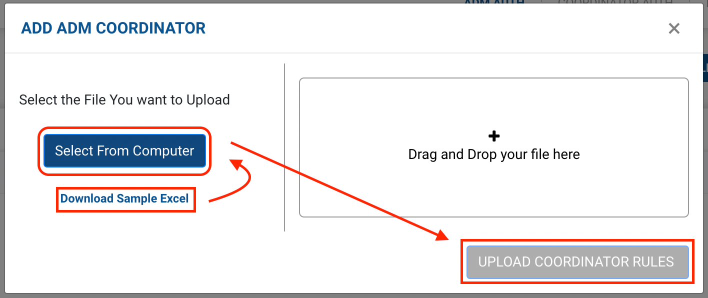 - Click on the Upload Coordinator Rules button.