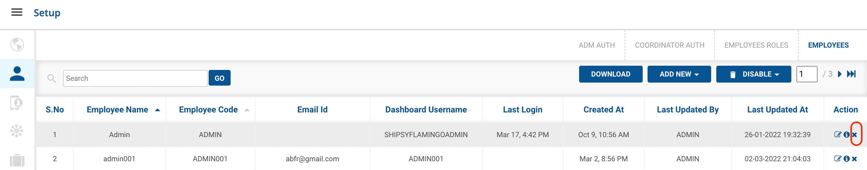 **Method 1 → Go to the particular employee,**Click on the Cross() icon on the right side of the table.