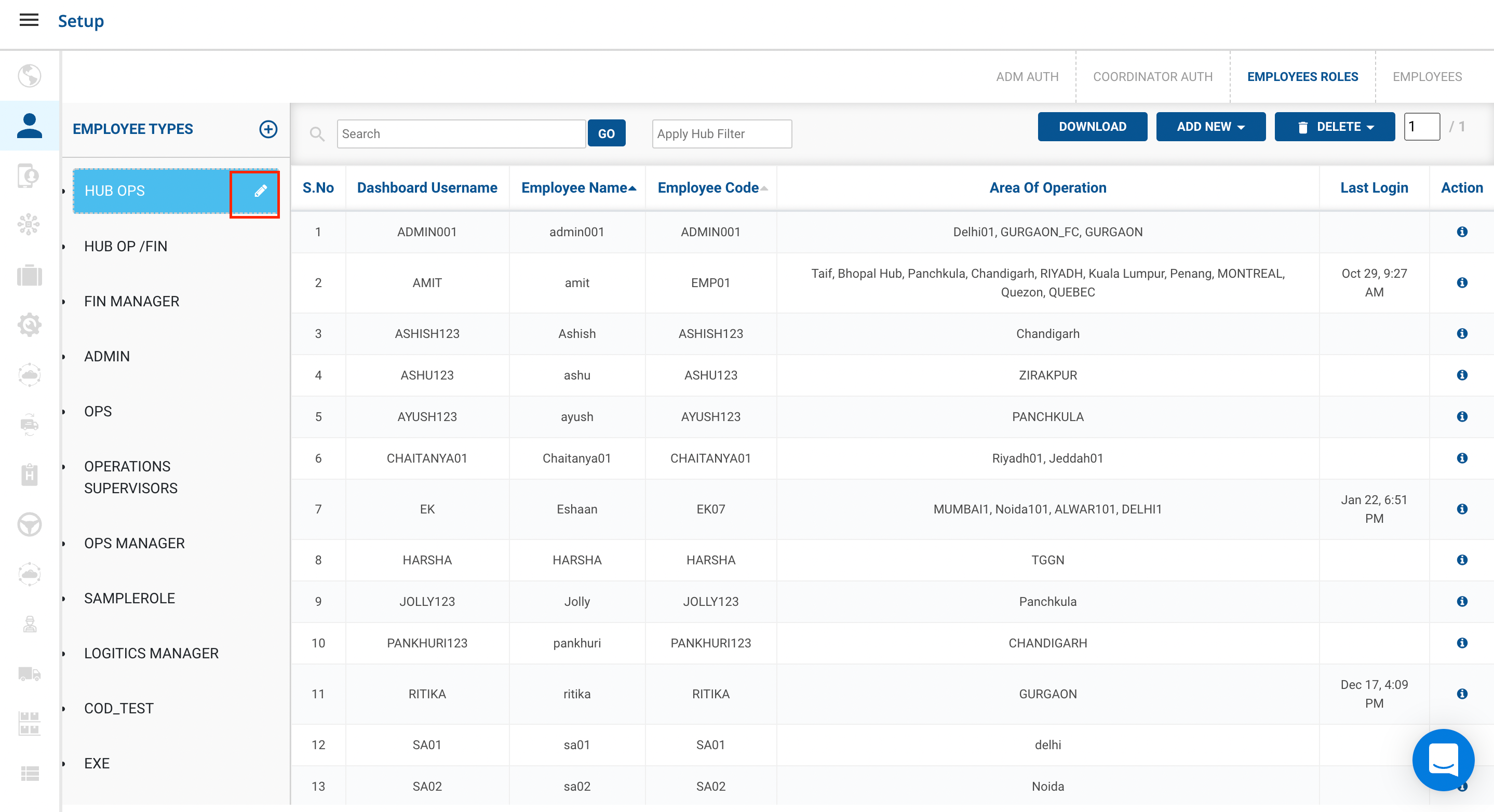 Now after going on the Employee Roles in the left hand side we can see all the Employee Types