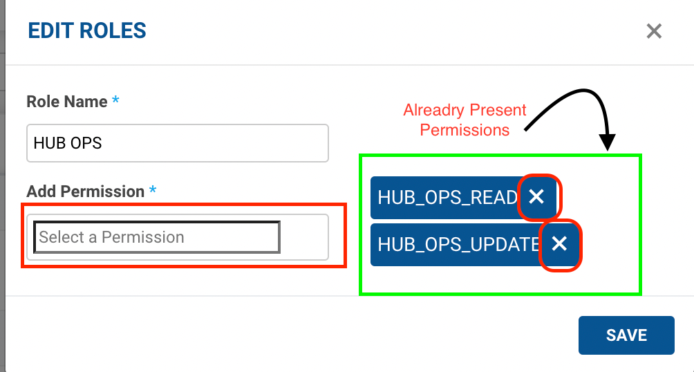 Click on Save after Adding or Deleting Permissions.
