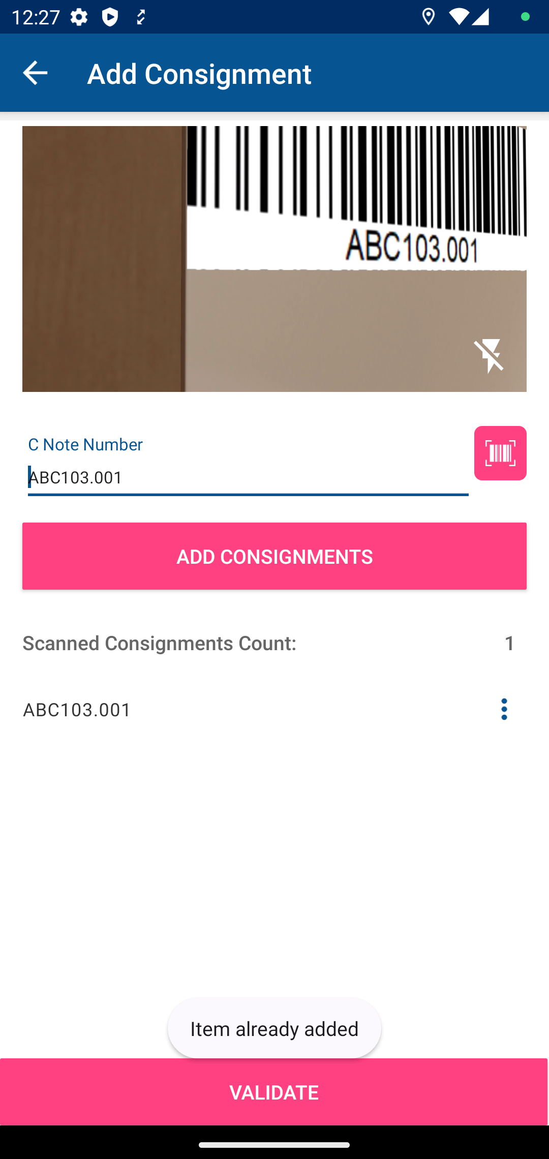 Add consignment screen will remain the same