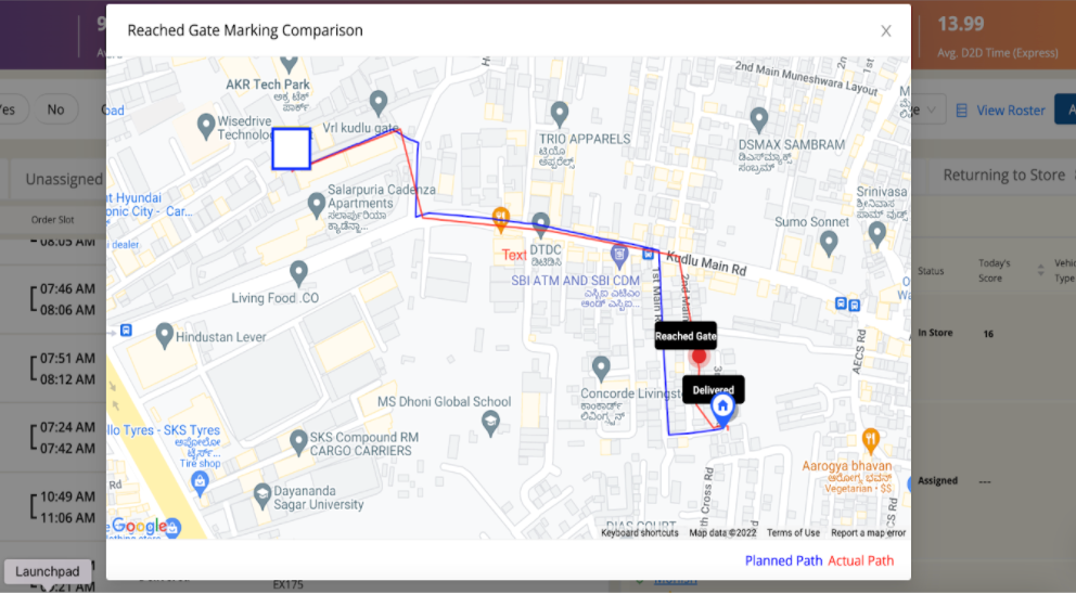 Article C-XpOPKX · sourceDescription : In the dispatch screen for completed orders we can see the Planned Path created by the system vs the path taken by the rider to reach that destination.