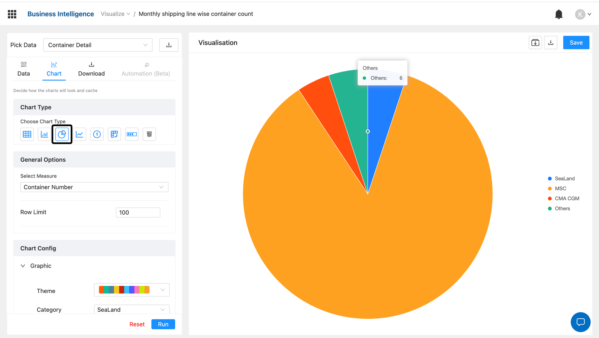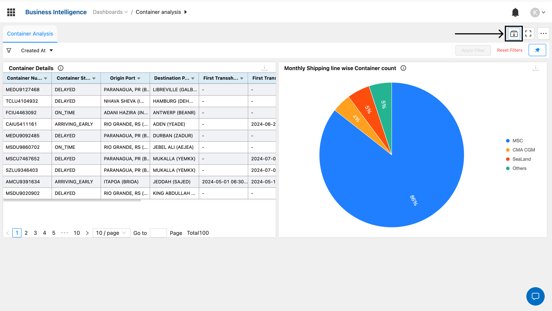 - Based on the reporting requirement, we will have to choose the right data mart for making the report. For example, if we want to make a container tracking report, the best data mart option would be a Container Details report, as it contains all container-level data.