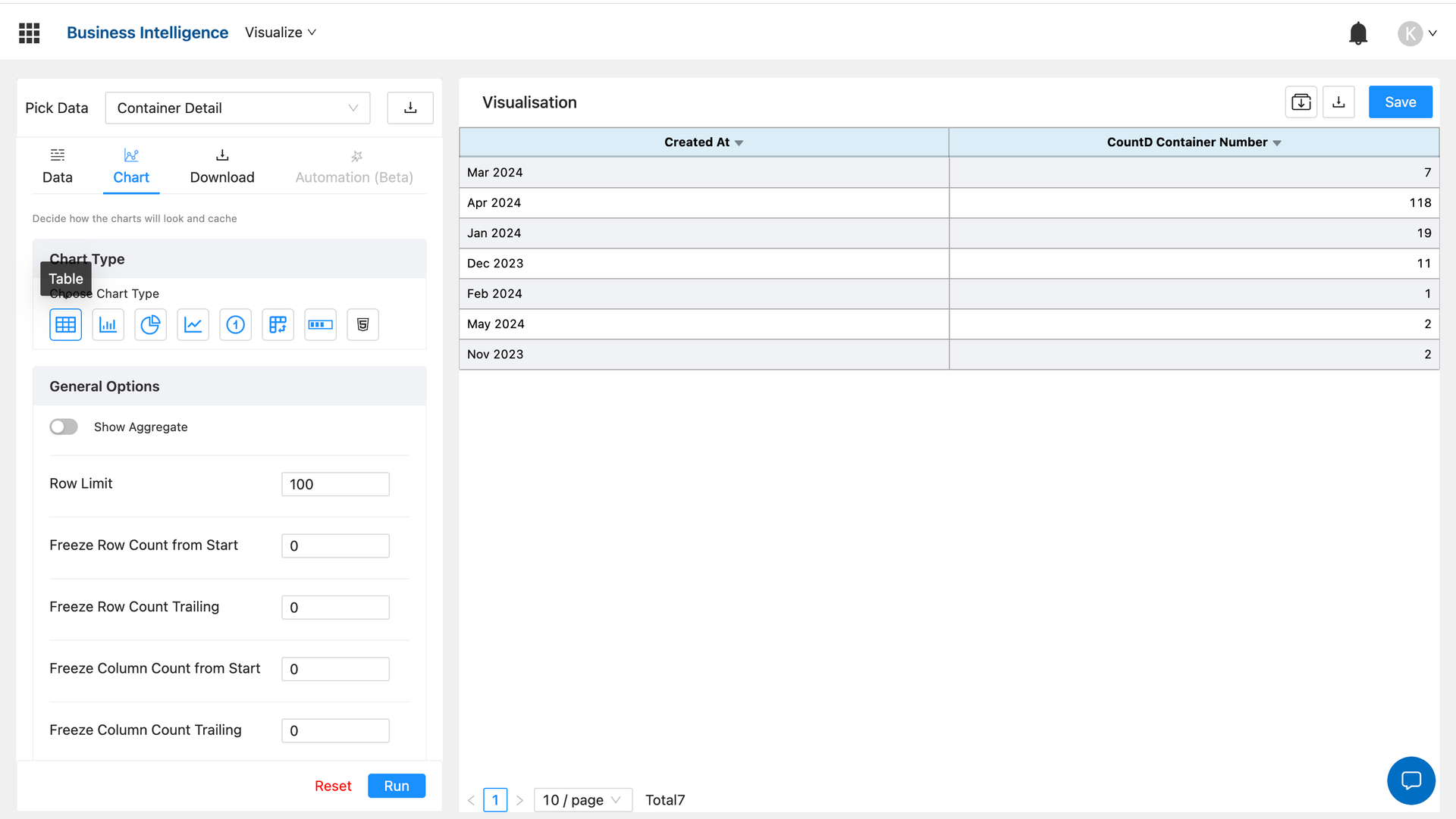Dive deeper into your data with customisable tables that allow for detailed analysis and comparison. Tables provide a structured format for organising and presenting data, making it easy to identify outliers, anomalies, and key metrics that drive business performance.