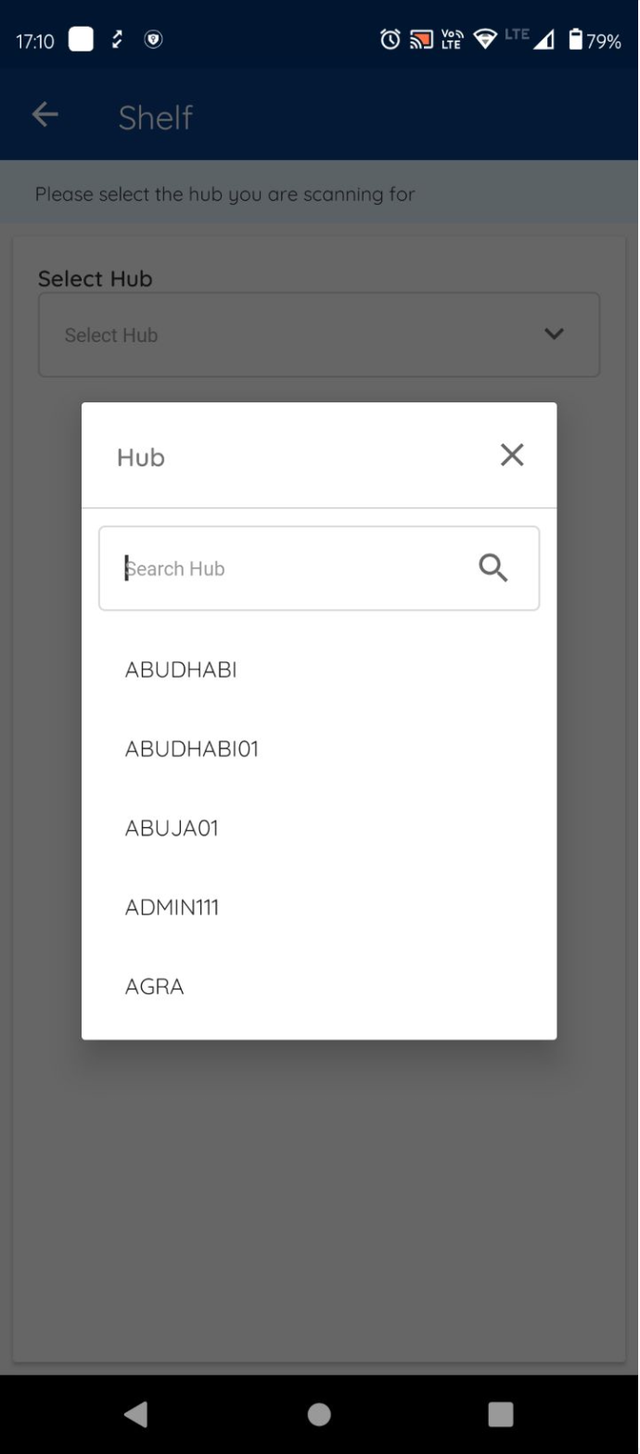 - On the Shelf Screen, the user can see the list of shelves available at the hub.