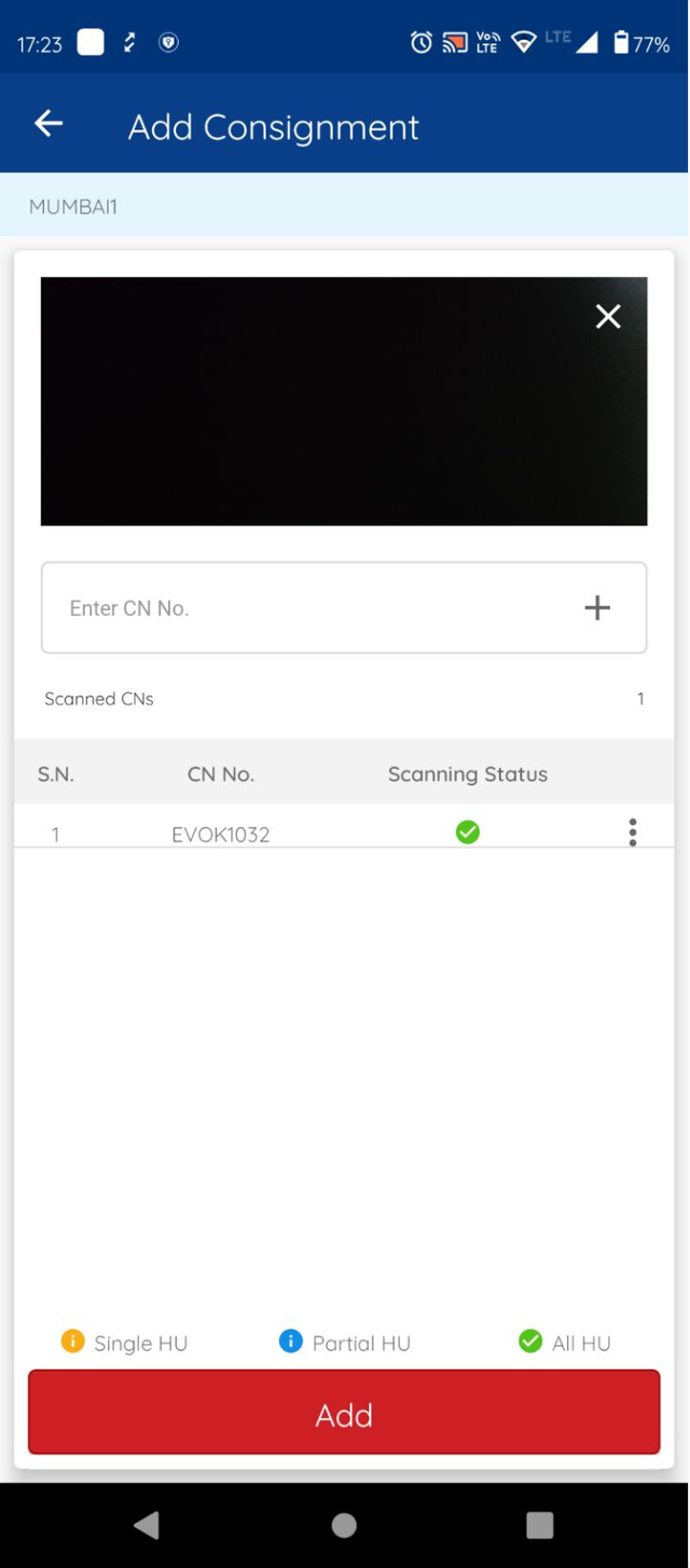 - Click on ‘Proceed’. Scan the Consignment label and click on Add.