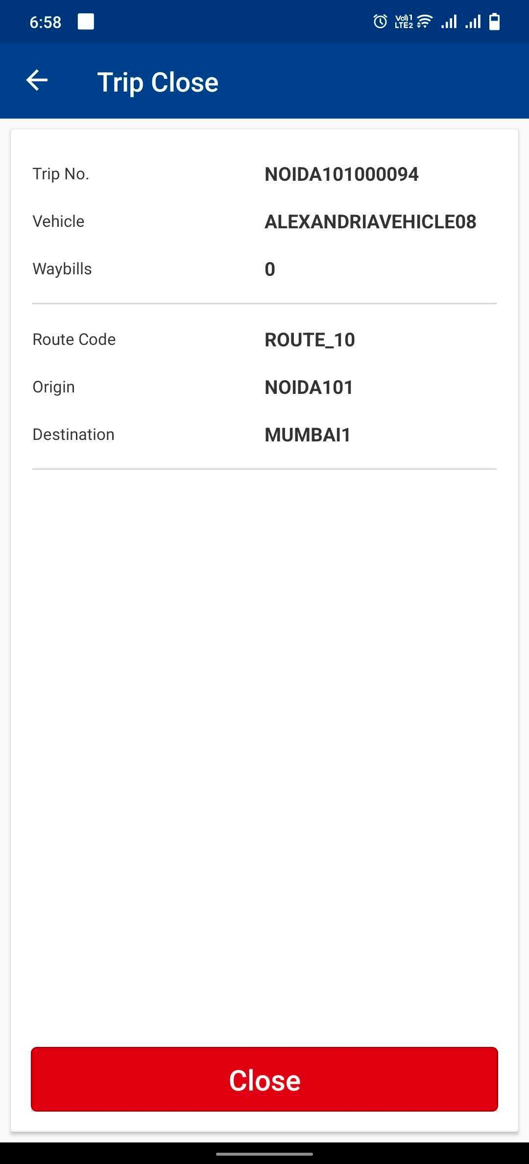 - The Trip has been closed successfully.