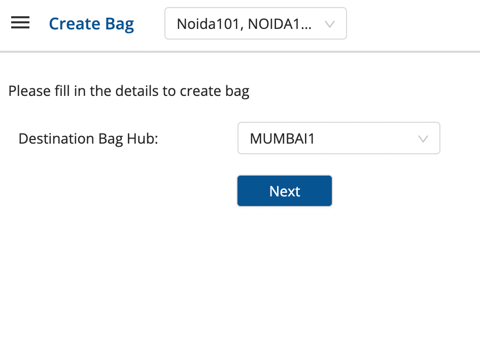 - In the main dashboard, click on Middle Mile → Bags.