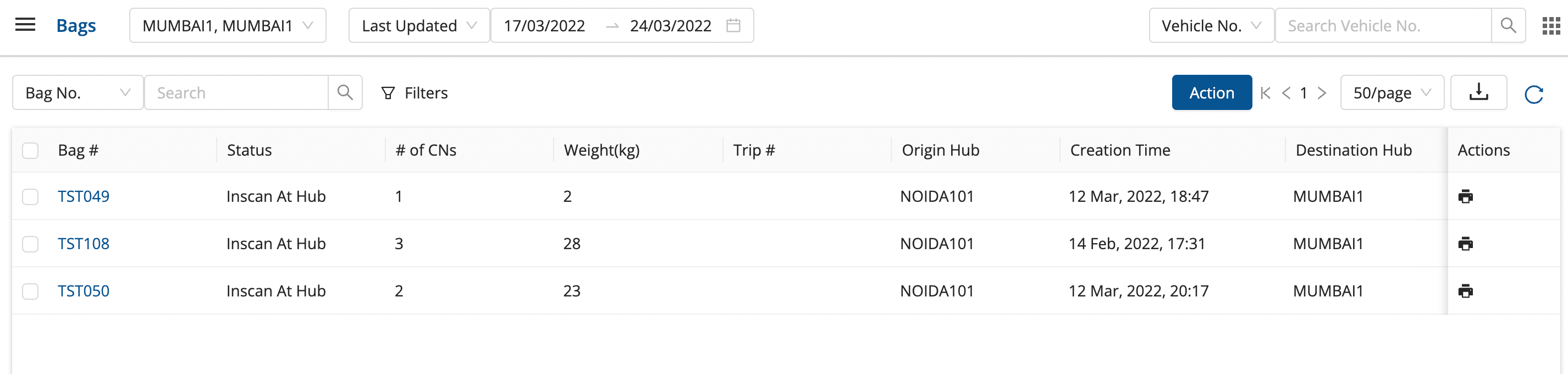 Select the destination hub and enter bag no and select the bag.