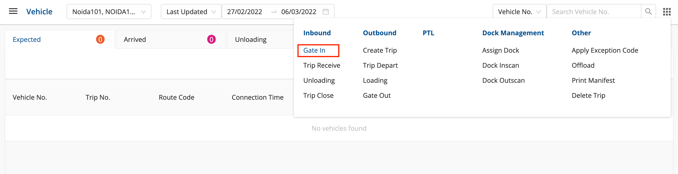 Article sERFfqQD · sourceDescription : This page covers the process of the gate in of any middle mile vehicle.