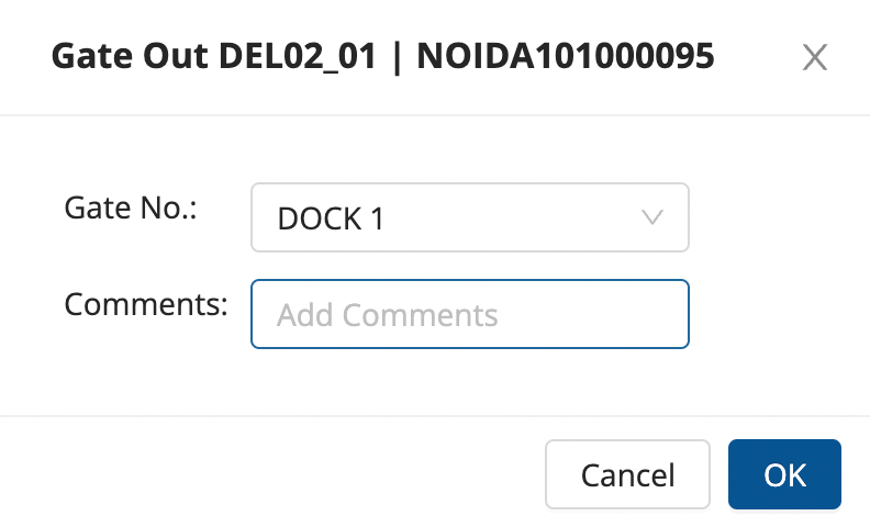 Enter the Gate No. and any additional comments if required, and click on ok.