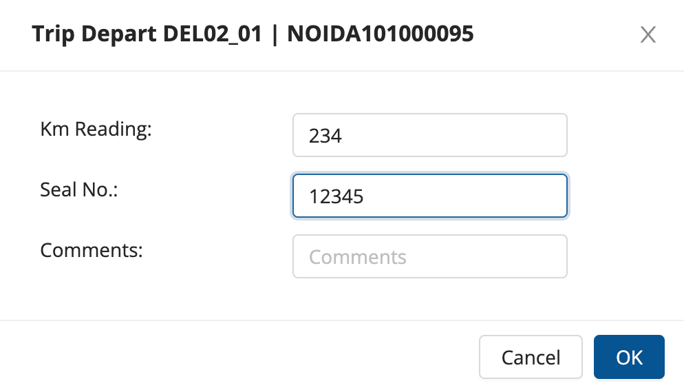 - Enter Km reading and a seal number and click on ok.