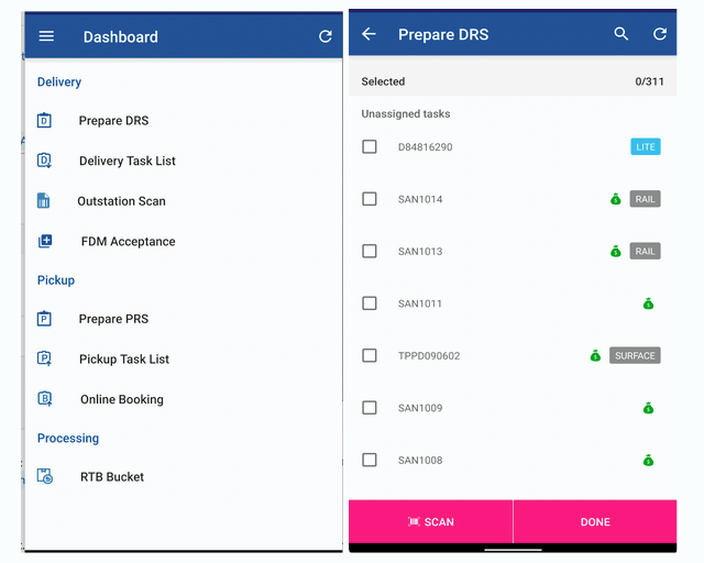 Smart Track: The CNs that need to be delivered will start reflecting in the Smart App in the ‘Prepare DRS’ section. The rider can navigate to prepare DRS, and choose and accept a CN based on their feasibility. The path to accept a CN is as below.