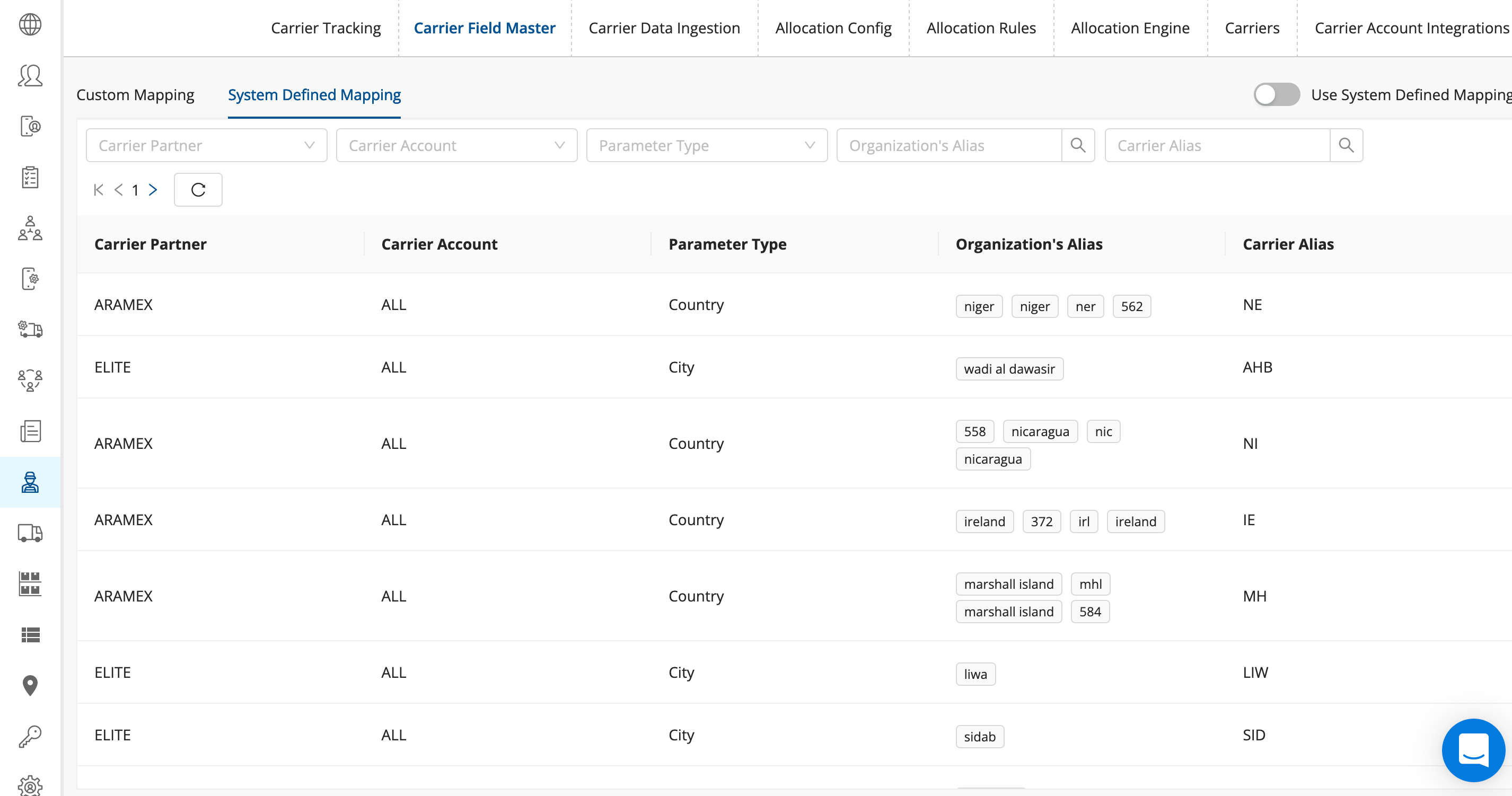 - Location: Setup > Carrier Partners > Carrier Field Master > System Defined Mapping