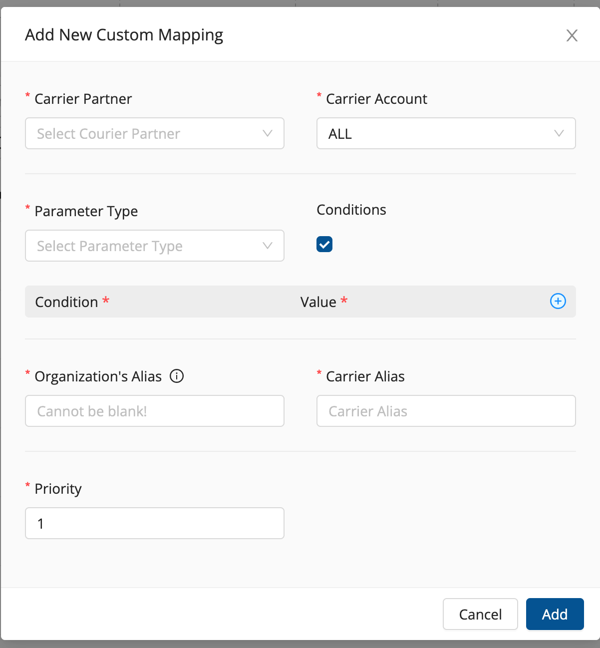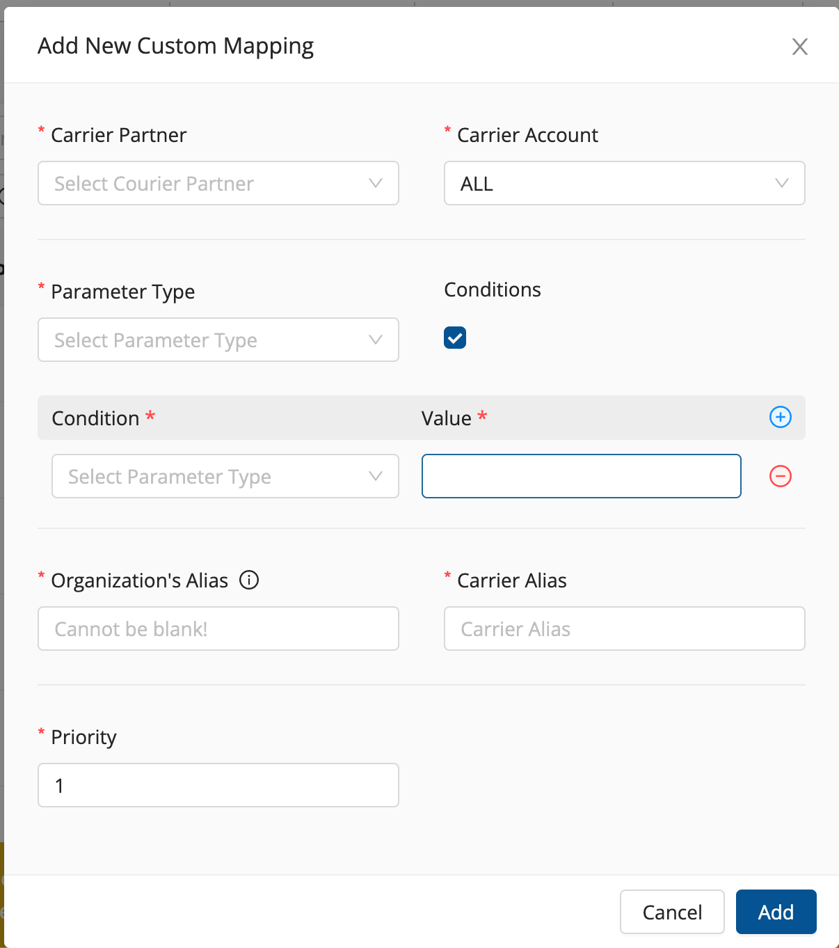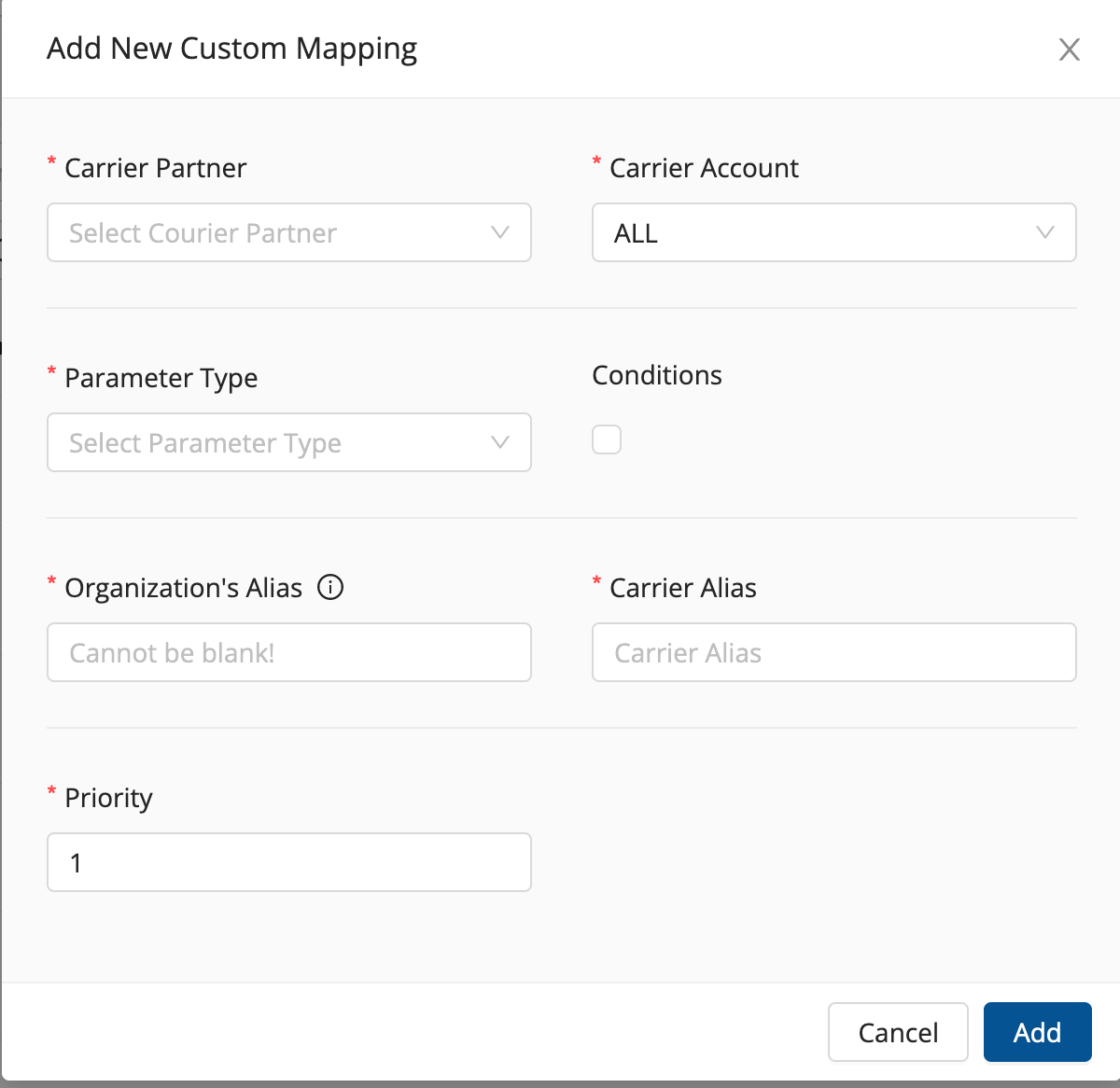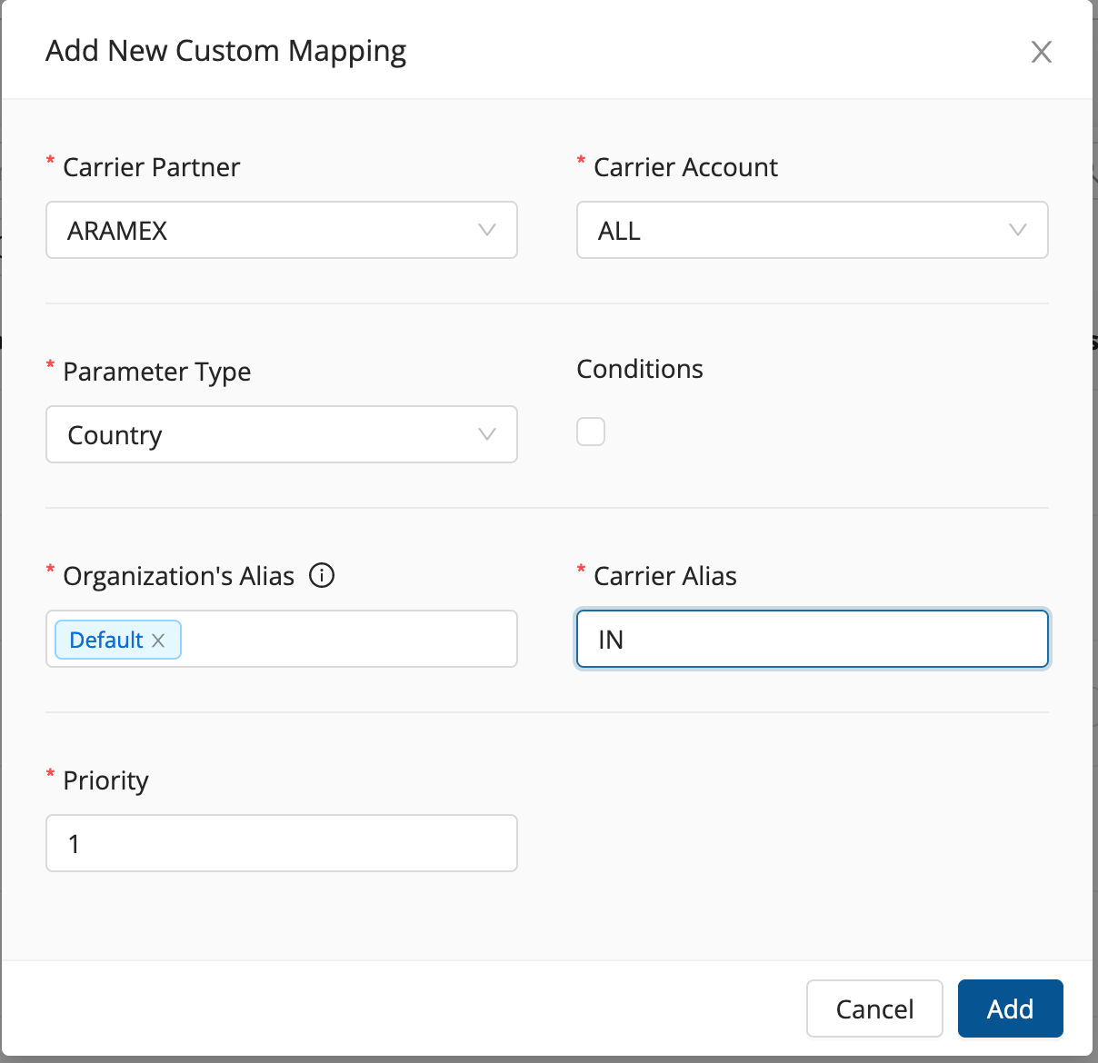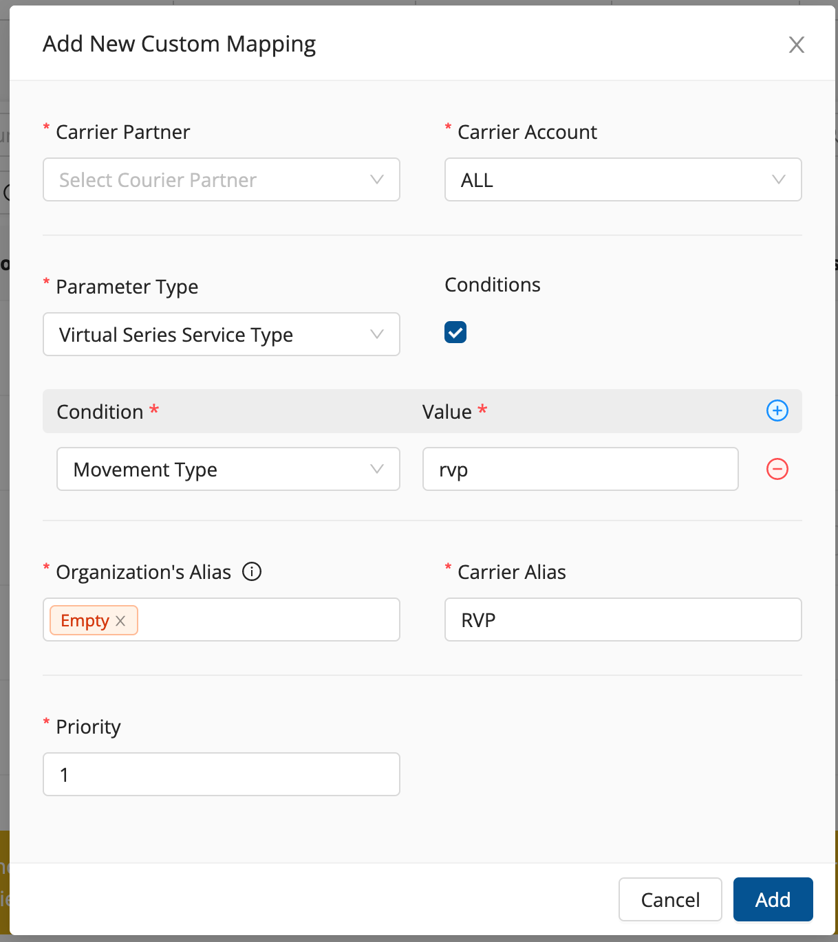 - Under “Carrier Alias” add the value to be sent to Carrier Partner for booking