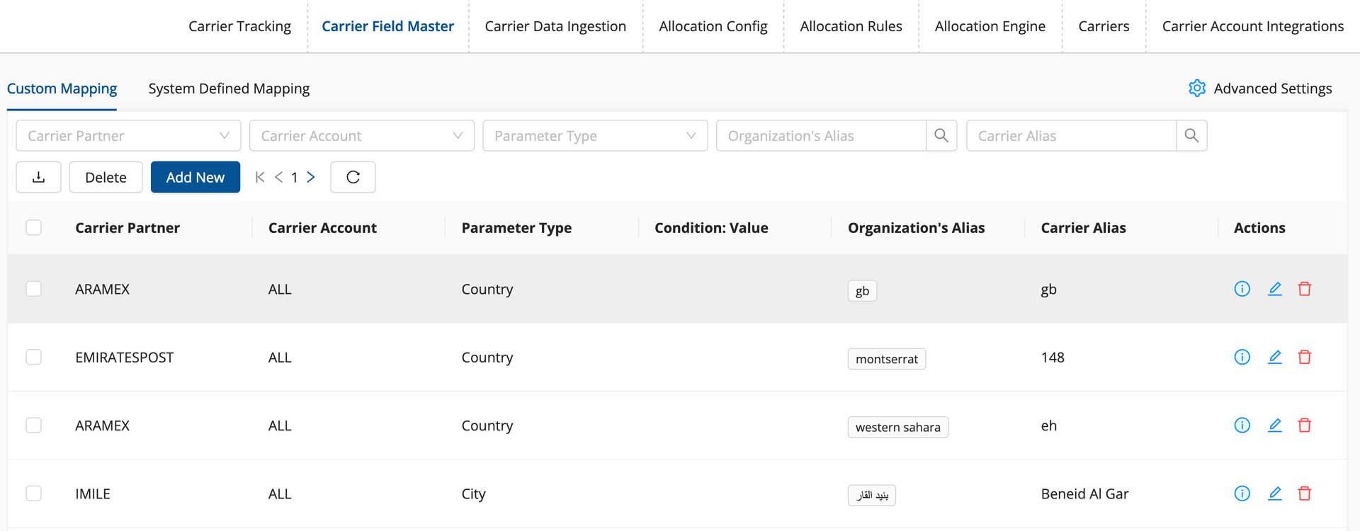 - Goto Location: Setup > Carrier Partners > Carrier Field Master > Custom Mapping