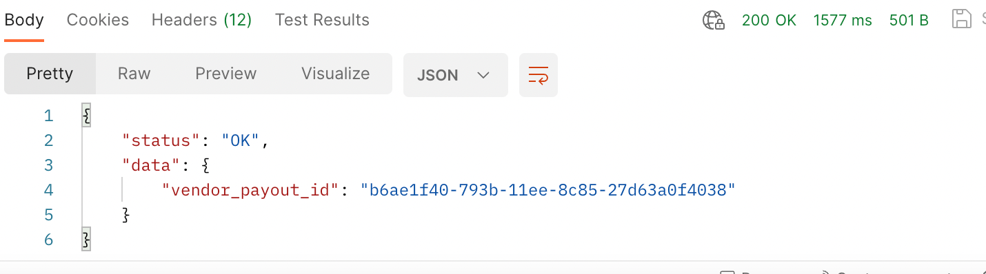 The Res Payload will give you the Vendor Payout Id below: