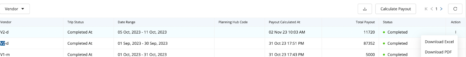 You can download the files on the basis of which the Vendor Payout has been calculated, The files can be downloaded in Excel and PDF formats.