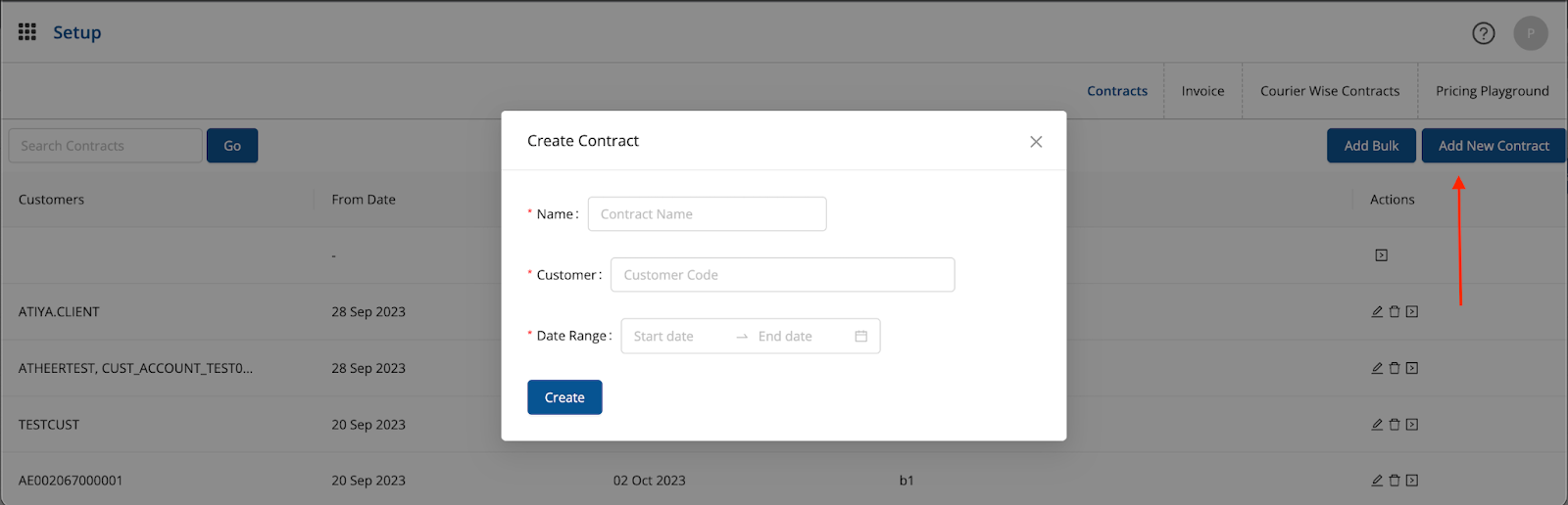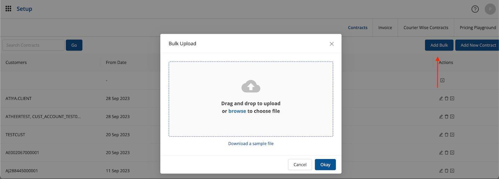 Similarly, can add the contracts in bulk via excel file option available on Shipsy portal.